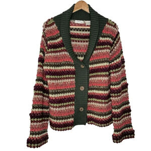 Orvis Vintage Y2K Green Pink Striped Wide Sleeve Collard Knit Cardigan Size S