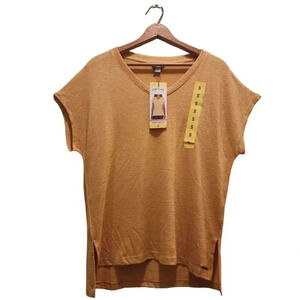 Orvis Womens Yellow Knit Polyester Blend V-Neck Pullover Tunic Top Size Small