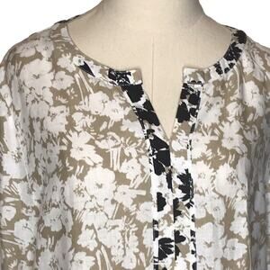 Orvis-XL(18-20) 100% Linen Floral Print Tunic-Tab Sleeve Hi-Low Hem