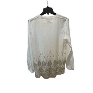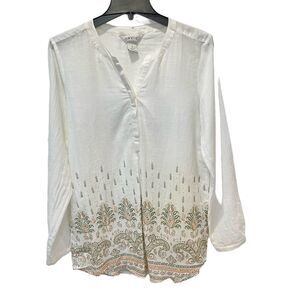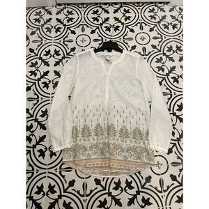 Semi sheer cotton half button blouse with print on bottom hem. In very good condition Bundle and save šŸ˜€