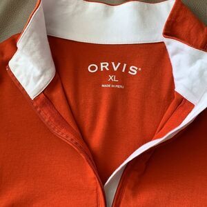 Orvis extra-large pullover with quarter zip. The shirt is orange with white collar and trim at the quarter zipper. Like new condition and smoke free/pet free home