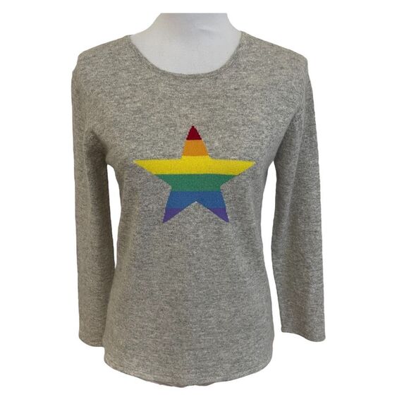Orwell + Austen Cashmere Rainbow Star Pullover Crewneck Sweater Gray Size Medium