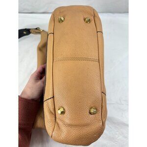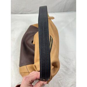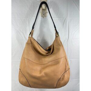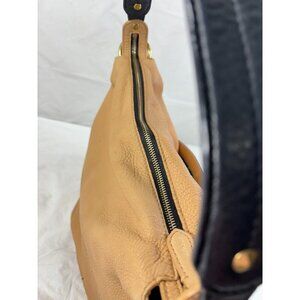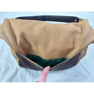 Oryany Adele Colorblock Tan & Brown Pebbled Leather Hobo Shoulder Handbag