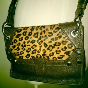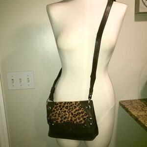 Authentic ORYANY deep brown leather bag with pony hair detail