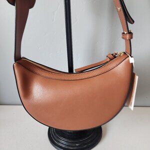 "NEW" Gorgeous Rust/Brown Leather Half Moon Rookie Crossbody By Oryany. Zip Top Closure, Gold Tone Hardware, Adjustable Shoulder/Crossbody Strap with Flap Pouch (removable), Textile Lining with 1 Zip & 1 Slip Pocket, Bag Measures approx. 6" H X 10" W X 3" D, New, Tags & Dust Bag:) Rt.250.00 approx.