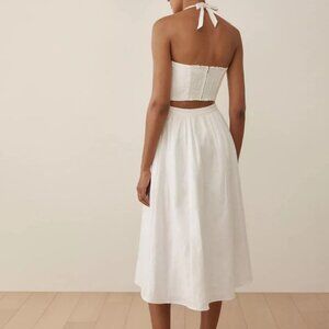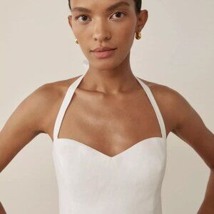 Back smocking, non-adjustable straps, sweetheart neckline. Button front, and back zipper.
