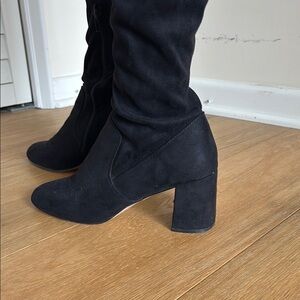 Osana Over-The-Knee Black Heeled Boots • Size 8.5 • Chic & Sleek Silhouette