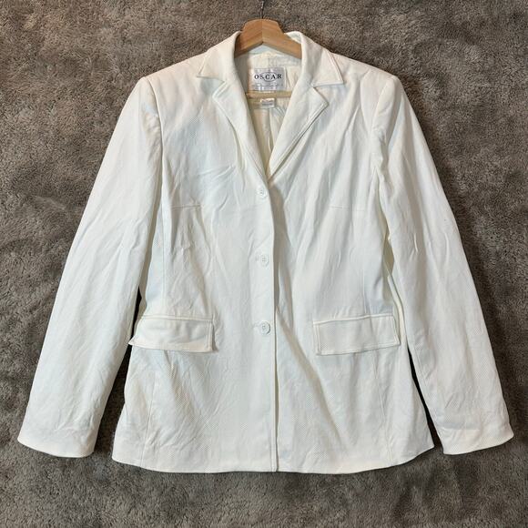 Osca de la Renta White Basketweave Blazer Jacket Women's 10 M Medium