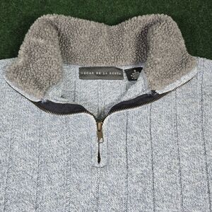 Oscar De LA Renta | Textured Stripe Waffle Knit Mock Neck Sherpa Collar Pullover