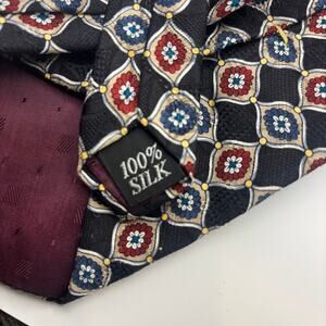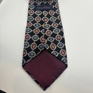 Oscar De La Renta 100% Silk Men's Tie Necktie Navy Blue Red