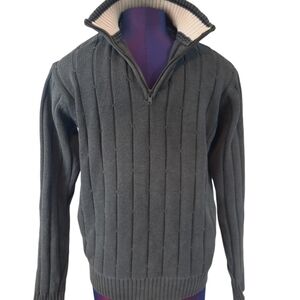 Oscar De La Renta 1/4 Zip Mock Neck Gray Sweater Size Medium Men's