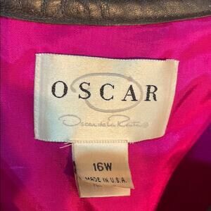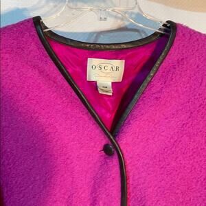 Oscar De La Renta 16w generous hot pink mohair jacket euc pockets leather trim