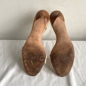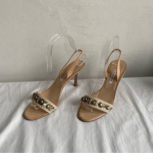 Oscar De La Renta Beaded Linen Sling Back Sandals Kitten Heels