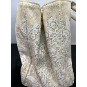 Oscar De La Renta Beige Canvas Floral Tote Bag
