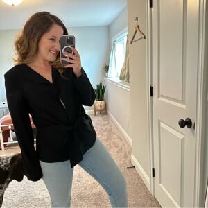 Offers welcome. Model can fit in many sizes but is normally a 6/8/S/M in tops, 28/29/8 in pants, 34A, 5’5” tall. All items cross-listed so snag them before they are gone. Very busy with providing you with high end items to look your best in so I do not do measurements. If you have general questions about the item I am glad to respond!