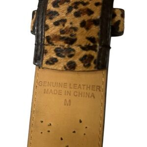 Oscar De La Renta Calf Hair Leopard Print Belt with Gold Buckle