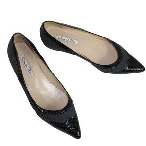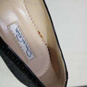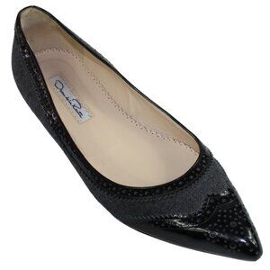 Oscar De La Renta Charcoal Tweed Black Patent Leather Detail Ballet Flats