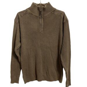 Oscar De La Renta Cotton Taupe Quarter Zip Sweater Size Large
