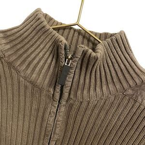 Oscar De La Renta Cotton Taupe Quarter Zip Sweater Size MED