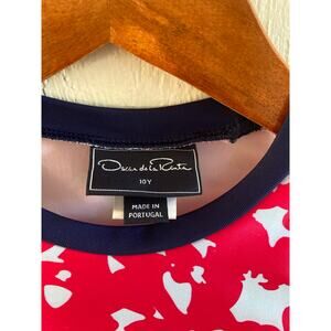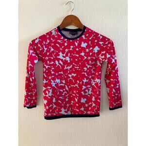 Excellent condition (like new) girls' red and blue Oscar de la Renta rashguard with crew neck and long sleeves. Machine wash.