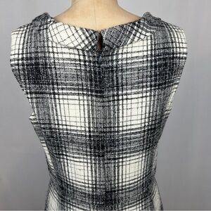 Oscar De La Renta Gray White Plaid Fleece Wool Silk Lining Cowl Neck Sleeveless Dress