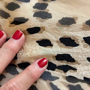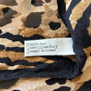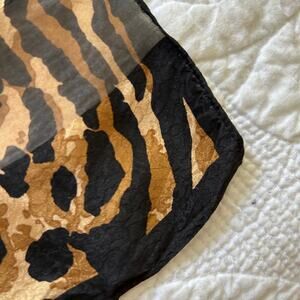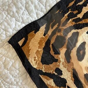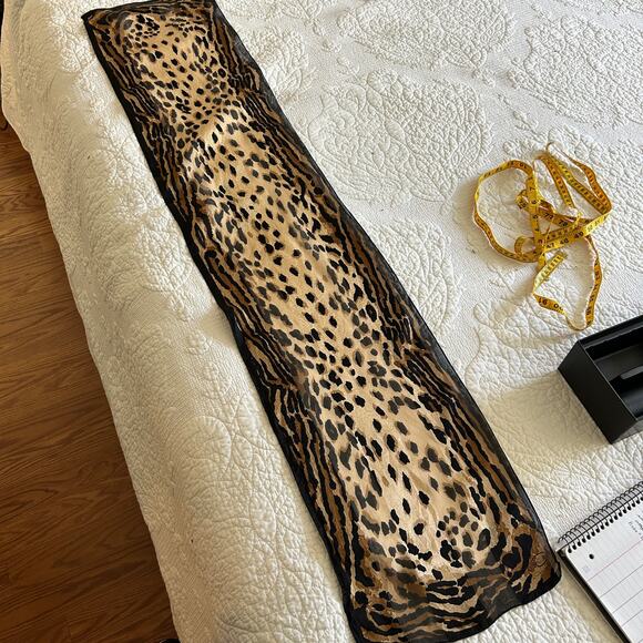 Oscar De La Renta Long Narrow Leopard Animal Print 100% Silk Scarf w Stains
