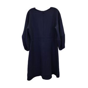 Oscar De La Renta Long Sleeve Dress in Navy Blue Wool