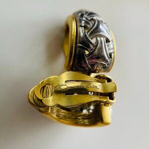 Oscar De La Renta Love Knot Vintage Mixed Metal Clip On Earrings
