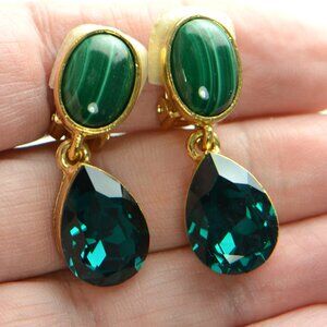 Oscar De La Renta Malachite & Crystal Teardrop Earrings