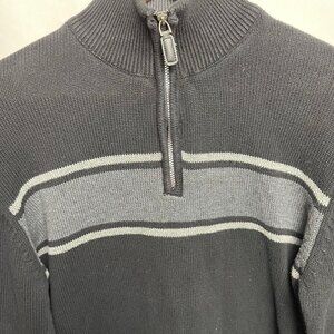 Oscar De La Renta Mens 1/4 Zip Pullover Sweater Size M Black Cotton Mock Neck
