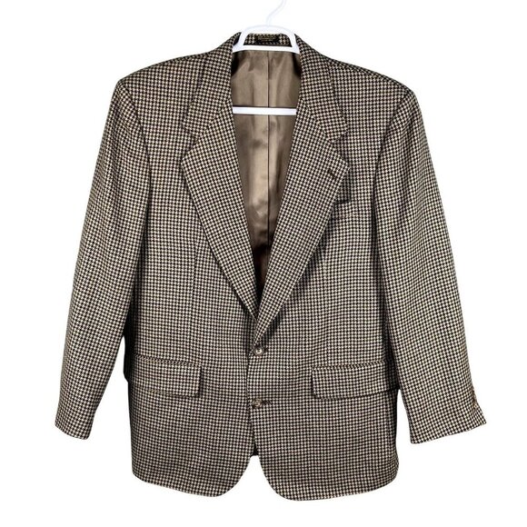 men's blazer houndstooth jacket wool blazer Oscar de la Renta tailored jacket formal blazer men's clothing professional wear vintage blazer classic fit jacket tan blazer brown houndstooth men's tailored clothing