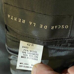 Oscar De La Renta Mens Blazer 42R Black Wool Blend Three-Button Formal Workwear