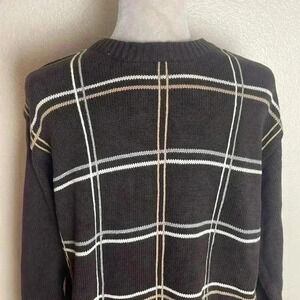 Oscar De La Renta mens brown plaid striped knit sweater. Back is solid. 100% cotton. Size L