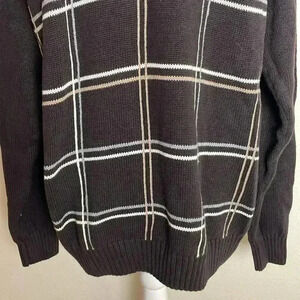 Oscar De La Renta Mens Brown Plaid Striped Pullover Cotton Knit Sweater Size L