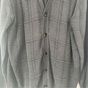 The Oscar De La Renta Men’s Cardigan in size XL is a stylish and versatile piece perfect for various occasions. Made from a comfortable blend of cotton and acrylic in a tight-knit gray square pattern, this cardigan exudes a preppy yet grunge-inspired vibe. With long sleeves, button accents, and a collarless design, it offers a relaxed fit for a casual or business look. This designer cardigan is ideal for the winter, fall, or spring seasons, and can be worn while traveling, walking, or even playing golf.
