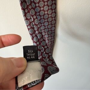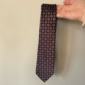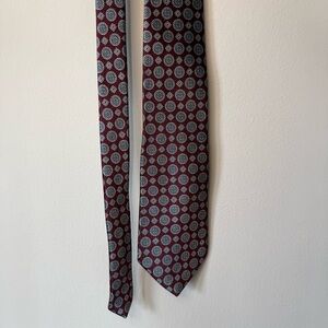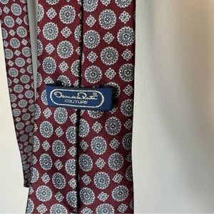 Oscar De La Renta Men’s Silk Tie Couture Collection Red Navy Geometric Pattern