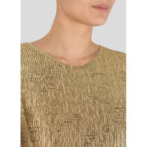 Textured gold sleeveless fitted dress.