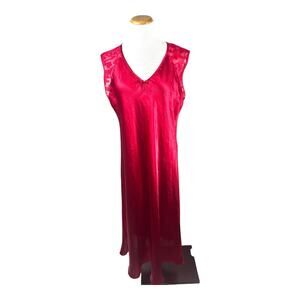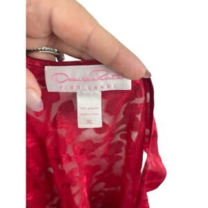 Oscar De La Renta Pink Label Red Lace Satin Full Length Gown Slip Neglige XL