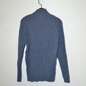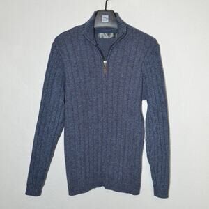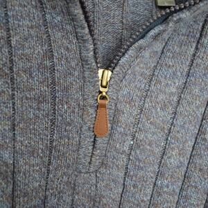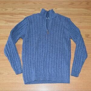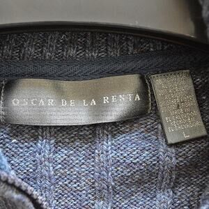 Oscar De La Renta Quarter Zip Knit Sweater Ribbed Cotton Blue Size Large