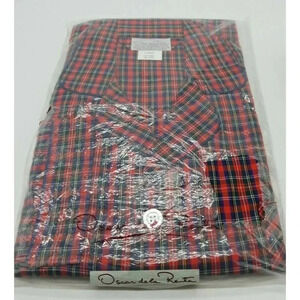 Oscar De La Renta Red Plaid 2 Piece Button Mens Pajamas Size Large New Old Stock