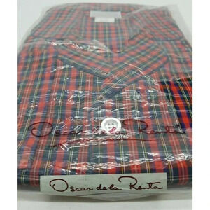 Oscar De La Renta Red Plaid 2 Piece Button Mens Pa