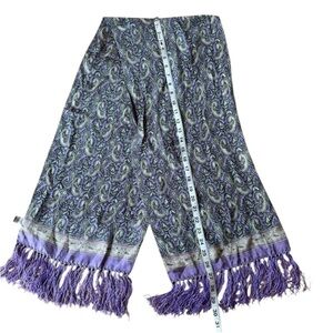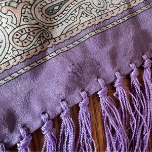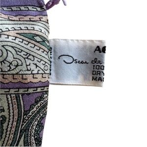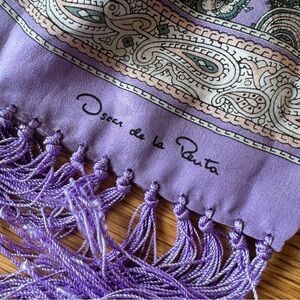 Oscar De La Renta Silk Scarf Fringe Purple Long Thin Paisley