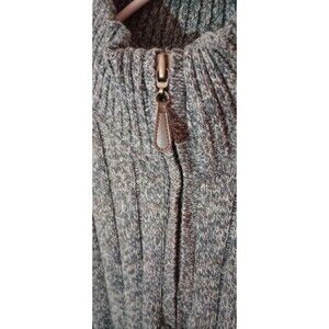 Greyish blue knit ribbed thick sweater with a quarter zip & leather pull