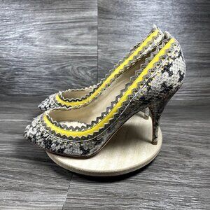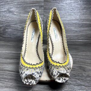 Oscar De La Renta Snake Print Scalpel Edge Peep Toe Pumps Women's Shoes Size 40