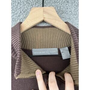 Oscar De La Renta Sweater 2XL 1/4 Zip Mock Neck Brown Prep Classic Retro XXL