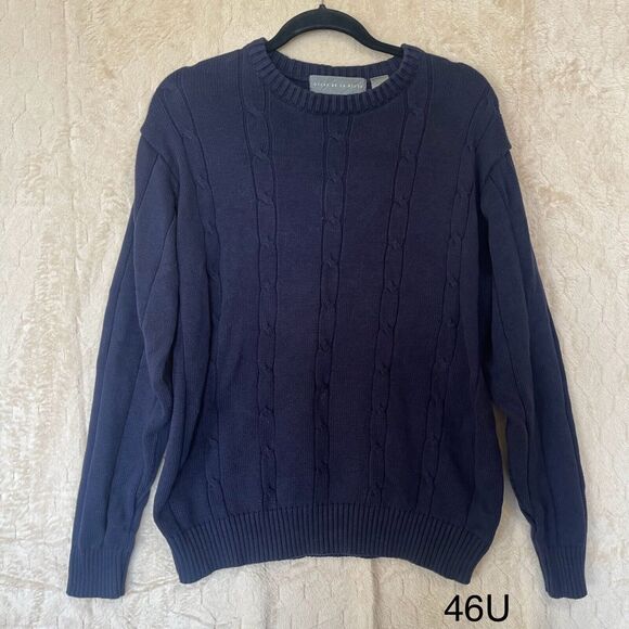 Oscar De La Renta Sweater Men's Size Large Cable Knit Pullover Navy Ribbed