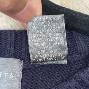 Elevate your wardrobe with this stylish Oscar De La Renta sweater, perfect for any fashion-conscious man. The navy blue color and solid pattern make it versatile for any occasion, while the cable-knit design and ribbed texture add a touch of sophistication. The crew neck and long sleeves make it suitable for cooler weather, and the thermal features ensure warmth and comfort.