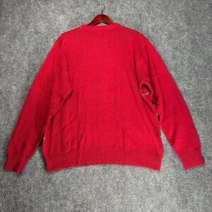 Oscar De La Renta Sweater Mens XL Red Plaid Cotton Crew Neck Ribbed Cuffs Hem