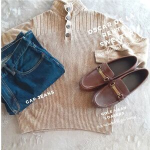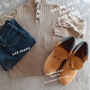 Oscar De La Renta Tan Sherpa Collar Sweater Size S