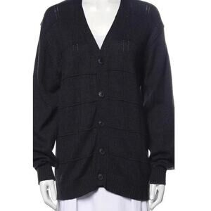 Unisex Oscar De La Renta XXL Dk Gray 5 Button Down Long Sleeve V Neck Cardigan Sweater